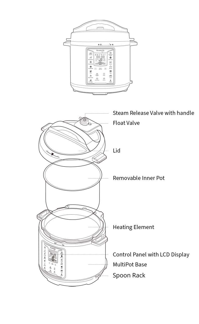 Crafted with a high-quality stainless steel inner pot for long-lasting performance.